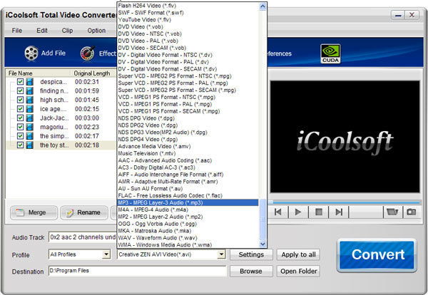 Therefore if we want to Convert MP4 video to MP3, we can only convert MP4 auido to MP3 format. To do that, we have to use a MP4 to MP3 Converter to extract MP4 audio tracks and then convert them to MP3 format. iCoolsoft Total Video Converter is a professional software which can help us to convert MP4 to MP3 format with high output quality and fast conversion speed. Since it is shareware, you could free download its trial version to see whether it is the best choice for you.